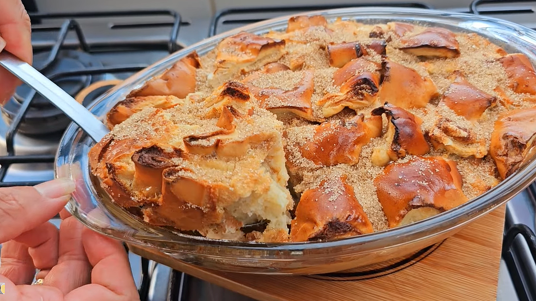 - Leve ao forno pré-aquecido a 180º₢ e deixe a rabanada assar por cerca de 20 a 30 minutos.